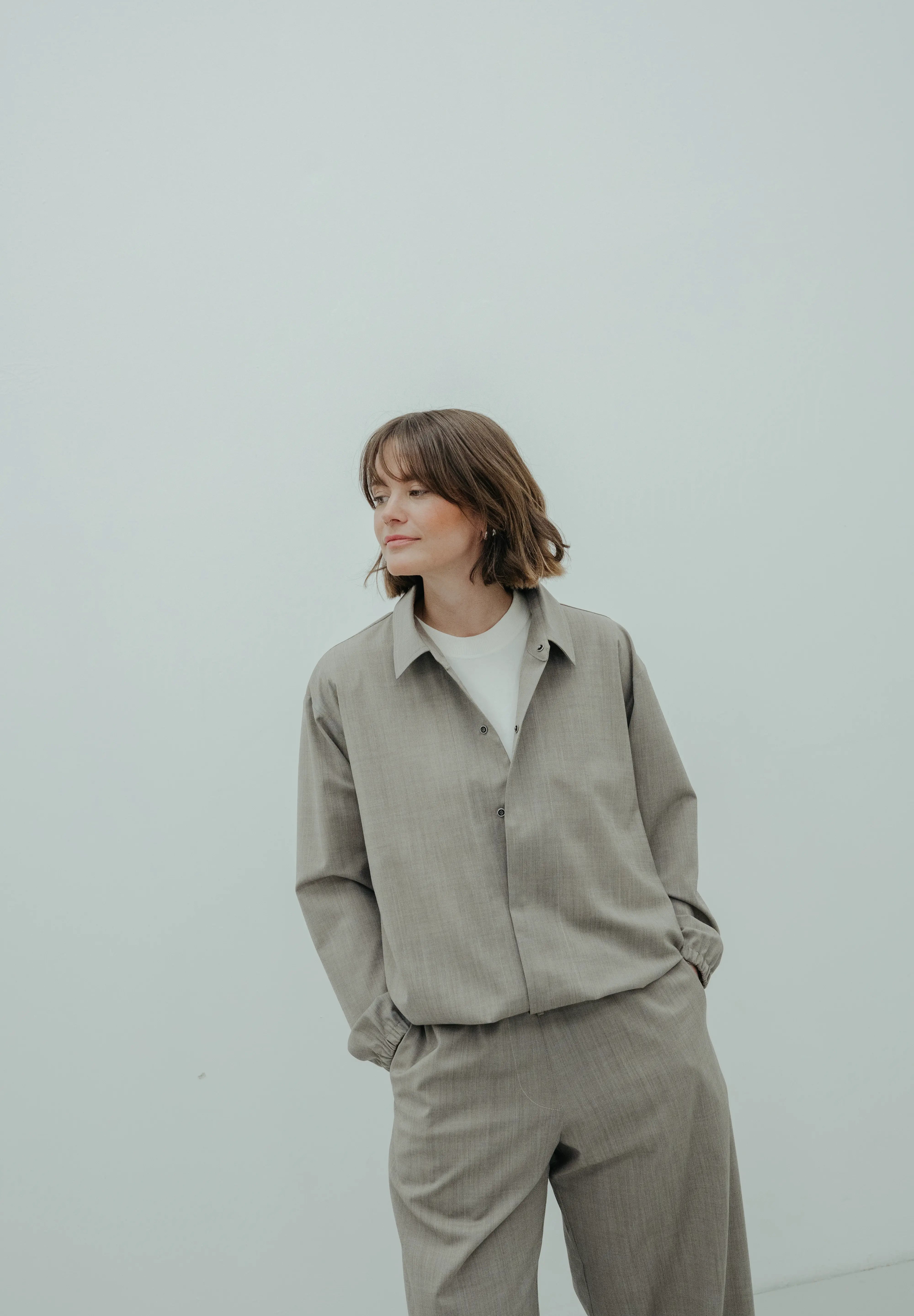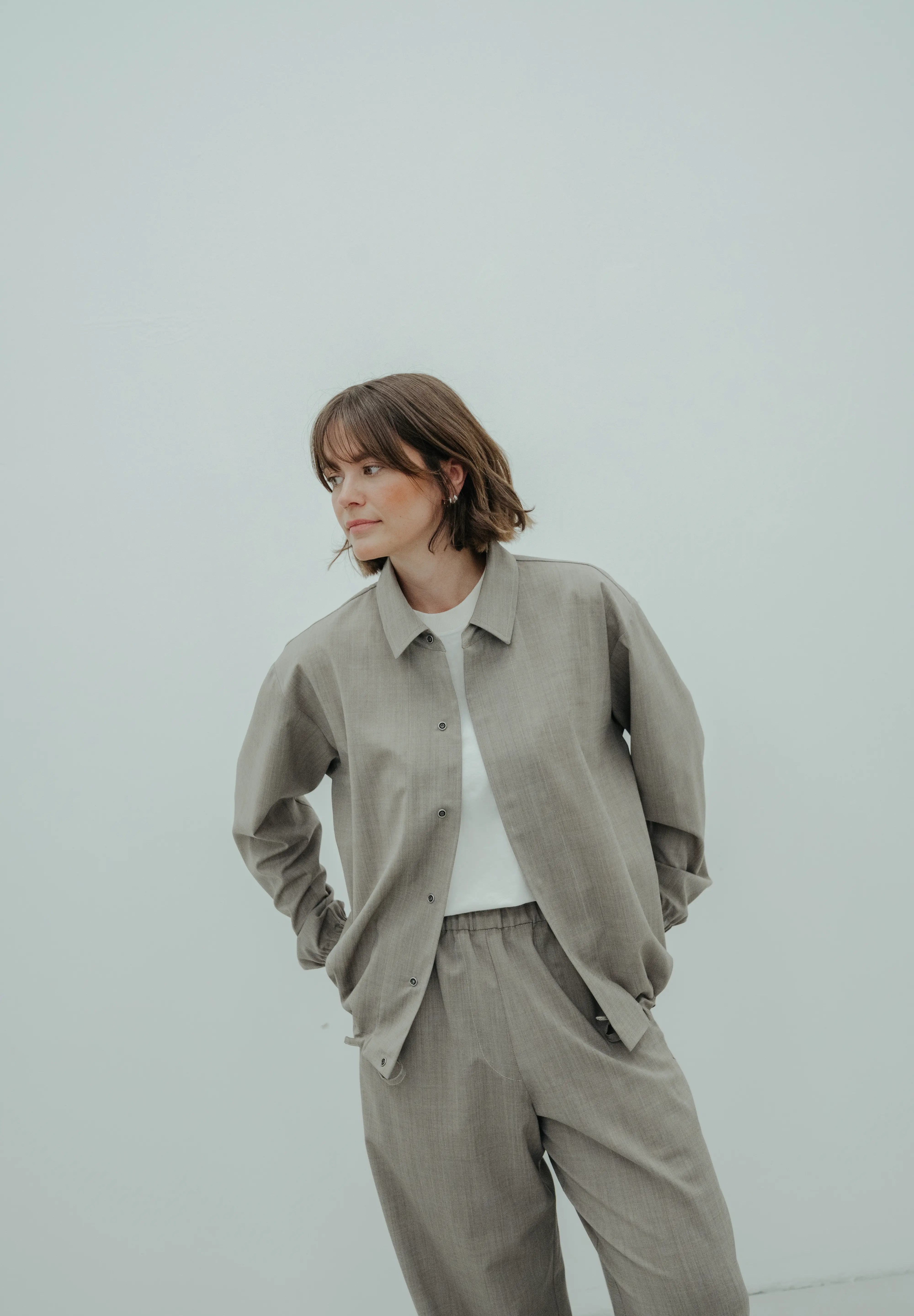 Sporty elegance meets urban minimalism. This modern shirt jacket combines a relaxed, boxy cut with high-quality premium wool-blend fabric. The result: A robust piece with a light feel that also impresses with a trendy cropped look thanks to the drawstring in the hem. Sustainably and precisely manufactured in Germany.